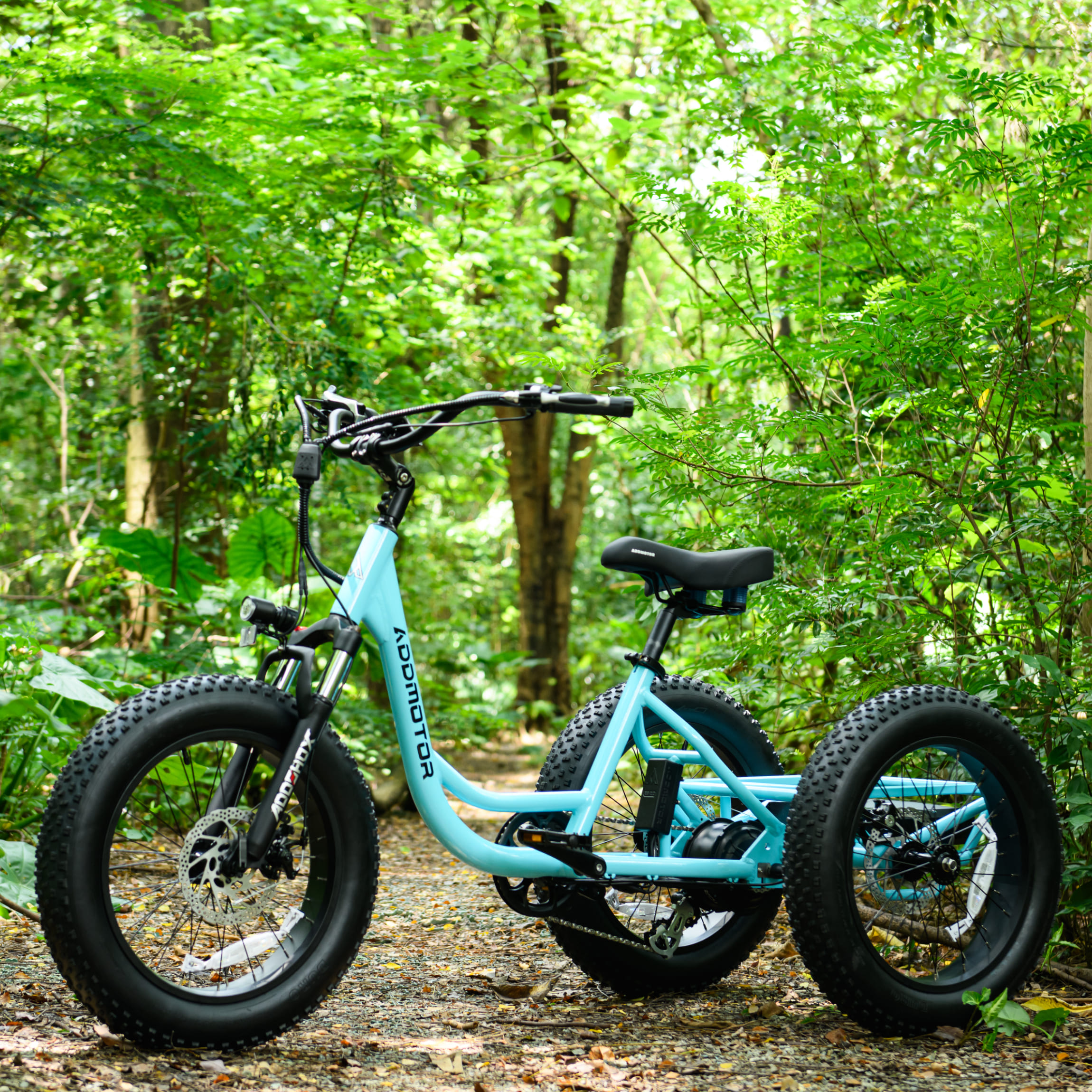 - All-Terrain Stability: A fat-tire setup (24” front, 20” rear, 4” wide) combined with a rear differential ensures superior traction, balanced cornering, and reliable handling across dirt, gravel, or pavement.
